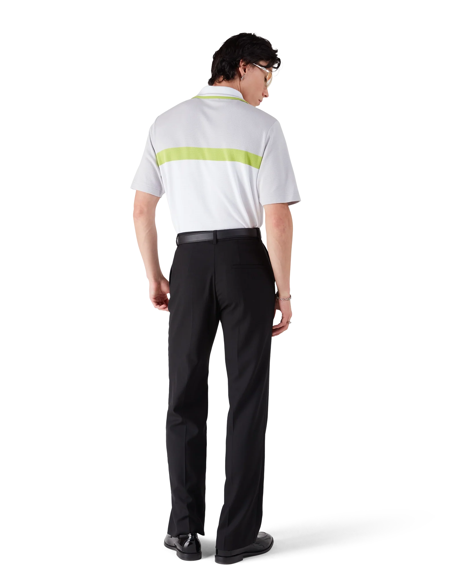 The grey short-sleeve polo shirt is a refined design featuring the house's Casablanca logo, embodying the house's distinctive approach to elevated sportswear. Completed with a grey and white colour-block, a classic ribbed collar, a zip closure featuring the house's diamond logo zipper tab and a relaxed silhouette.