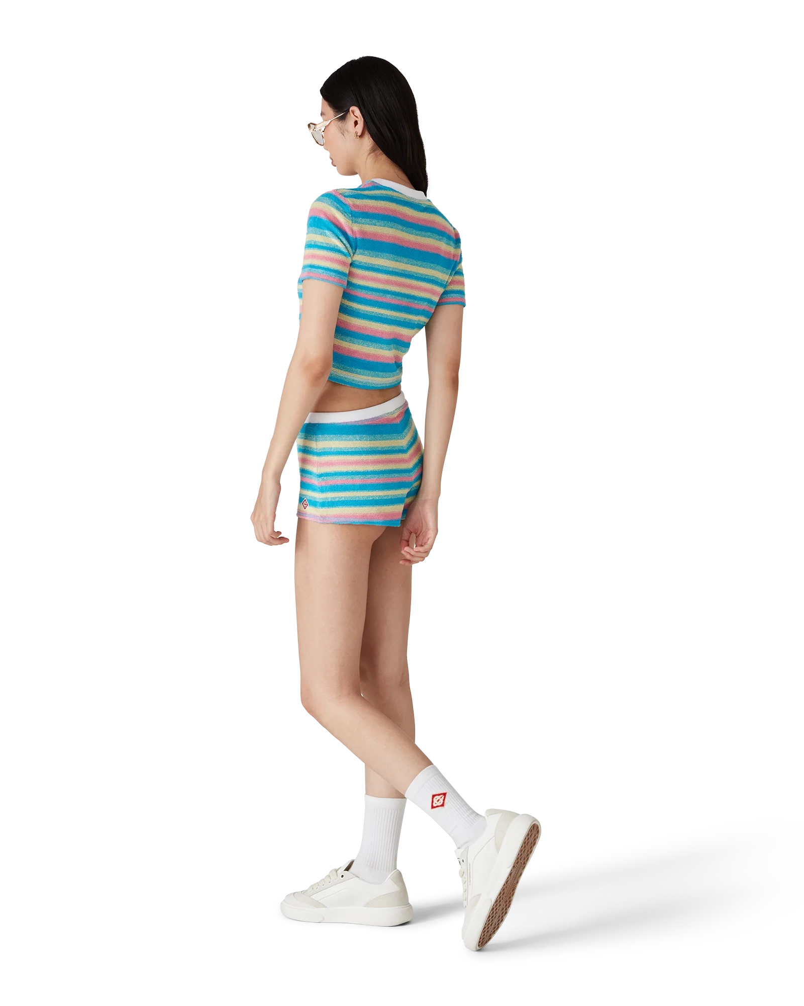 The stripe towelling top is a short-sleeve design crafted from towelling fabric and features the house's signature diamond logo. Completed with a classic crew neck.